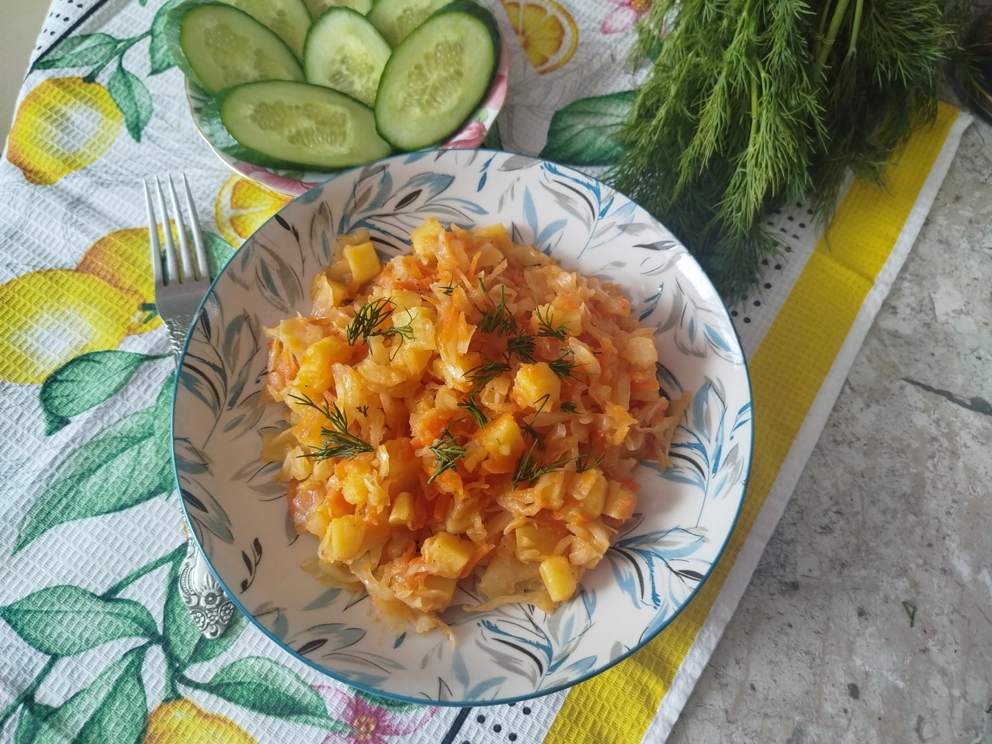 Тушёная капуста с картошкой на сковороде вроде и простое блюдо,но очень вкусное. Вполне подходит такой рецепт для начинающих готовить,я решила приготовить это блюдо вместе с подрастающей племяшкой.