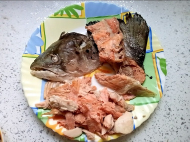 Рыбу нарежьте на стейки (или кусочки, если у вас филе), залейте водой и отправьте варить на среднем огне 15-20 минут. При закипании снимите шумовкой пену. В бульон добавьте лавровый лист по желанию и черный перец горошком. Солить суп на этом этапе не надо, так как в него будет добавлен соленый плавленый сырок.
