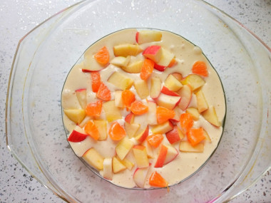 5. Мандарины и яблоки выделяют сок при выпечке. Если фрукты были очень сочными, часть влаги могла повлиять на структуру теста. В следующий раз можно слегка обсушить кусочки яблок бумажным полотенцем перед добавлением или посыпать их небольшим количеством крахмала.