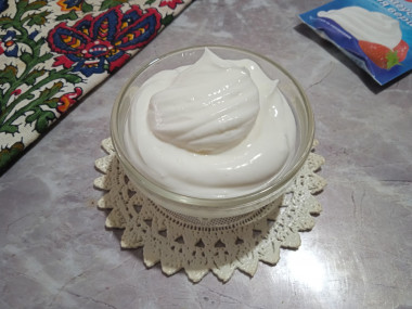 Готовый сметанный крем получается пышный и стабильный. Готовность его определяется тем, что он не растекается по чаше.