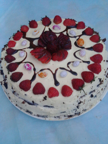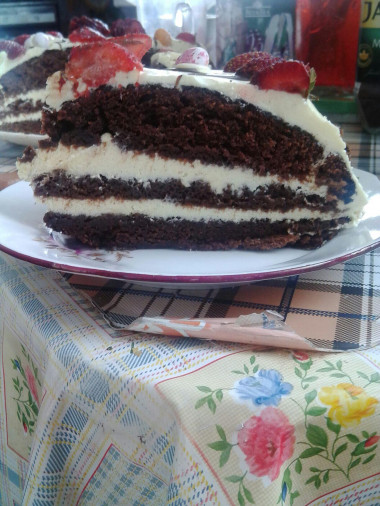 Собранный торт обмажьте кремом со всех сторон и уберите в холодильник на несколько часов. Крем должен застыть и пропитать коржи. А украсить торт с таким кремом можно на свой вкус. Готовьте с удовольствием!