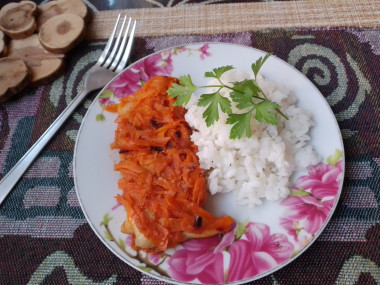 Готовая рыба получилась сочная, вкусная и овощи отлично ее дополнили. Подавала рыбу с отварным рисом.