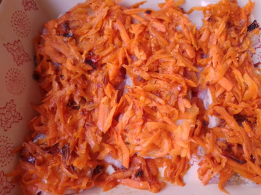 В сковороде разогреть растительное масло. Выложить морковь и обжарить, помешивая, 4 минуты.
