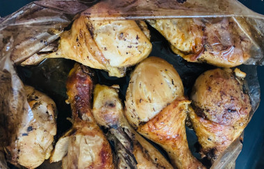 Переложите рукав с ножками на противень и поставьте в разогретую до 180°С духовку на 30 минут. В процессе пакет можно 2-3 раза вынуть и встряхнуть мясо, чтобы соус распределялся более равномерно.