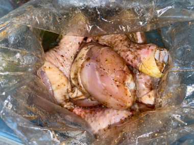 Рукав завяжите с другой стороны. Рукав хорошо встряхните, чтобы ножки равномерно покрылись маринадом. Оставьте ножки мариноваться минимум на 1 час. За полчаса до конца маринования включите духовку на 180 градусов.