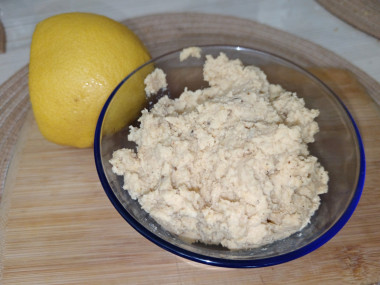 В готовое пюре добавьте кунжутную пасту, соль, перец, оливковое масло и лимонный сок.