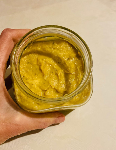 Нут измельчала погружным блендером. Добавляла в него воду в которой он варился и смесь измельченного кунжута, зиры и подсолнечного масла. Об этой смеси хочется сказать отдельно! Какой от неё прекрасный аромат! Особенно когда измельчаются подогретые зернышки! И в готовом хумусе кунжут очень хорошо звучит.
