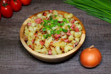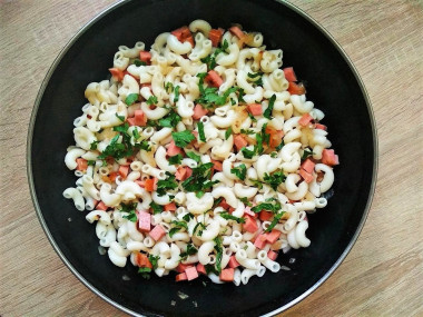 Макароны с колбасой на сковороде - это моя палочка-выручалочка, когда совсем нет времени на готовку. Получается очень вкусно, готовить несложно. То, что надо, когда не сил и времени. Спасибо автору!