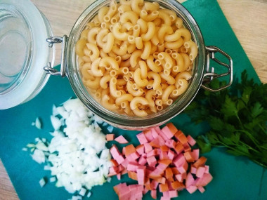 Как сделать макароны с колбасой на сковороде? Подготовьте все необходимые ингредиенты. Макароны можно использовать любой формы, но лучше взять из твердых сортов пшеницы. Они полезнее и не развариваются при варке. С выбором макаронных изделий поможет отдельная статья по ссылке в конце рецепта. Колбасу также можно взять любую. Помните, что общий вкус блюда будет зависеть от выбранных колбасных изделий.