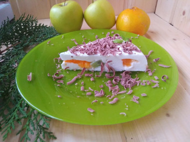 Белоснежный мусс с яркими дольками мандарина выглядит по-зимнему, сказочно и нарядно, он украсит любой стол, а в другое время года напомнит о новогоднем торжестве !