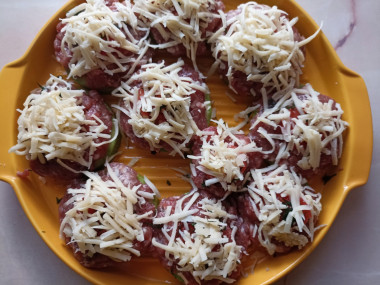 Твердый острый сыр натрите на мелкой тёрке и равномерно распределите между всеми порциями. Я не жалею сыра, и делаю прямо хорошую горочку. Запекайте кабачки при температуре 200 градусов в течение сорока минут до образования аппетитной румяной сырной корочки.