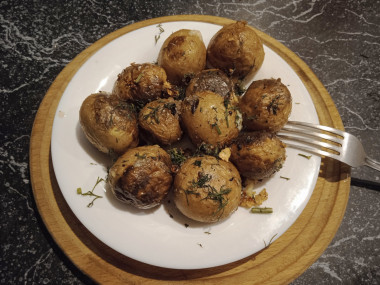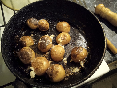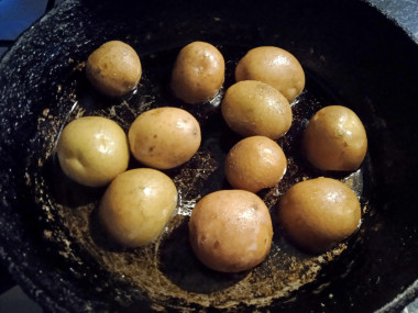 Если клубни крупные, то их можно предварительно отварить их в подсоленной воде в течение 15 минут от закипания. Затем воду слить, картофель обсушить и далее готовить, как в рецепте.