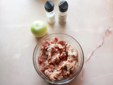 Заверните емкость с фаршем пищевой плёнкой и отправьте в холодильник примерно на два часа. За полчаса до начала приготовления включите духовку на 180-200 градусов.
