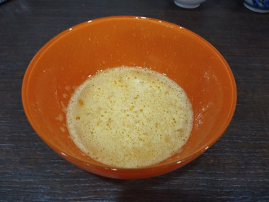 Пока остывает каша возьмите яйца. Разбейте их в глубокую миску, взбейте с сахаром и ванильным сахаром с помощью миксера до пышности. Яйца перед использованием помойте в теплой воде с содой, так как на их поверхности могут находиться вредные бактерии.