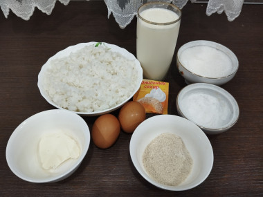 Как сделать запеканку рисовую сладкую в духовке? Подготовьте все необходимые ингредиенты.