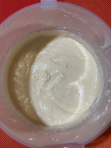 Затем добавляю цедру и пюре. Вот такое тесто должно получится. Фото не передаем настоящего цвет теста. Оно нежного светлого оттенка. И очень ароматное.Шаг 9: