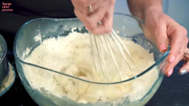 Хорошо перемешиваем венчиком все ингредиенты в миске.