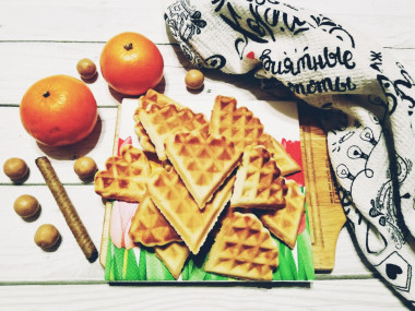 Я разрезала вафли на 4 части, - так их удобнее есть. Подавайте к чаю, или кофе. Приятного чаепития!