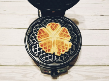Обжаривайте около 4 минут до золотистого состояния. Переворачивать ничего не надо, т.к. вафли жарятся сразу с двух сторон.