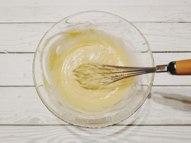 Хорошо взбейте до побеления массы. Для этого лучше всего воспользоваться миксером, хорошо взбить венчиком вряд ли получится.
