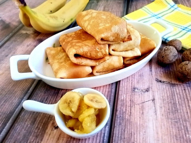 Приготовьте блинчики с банановой начинкой на завтрак или на полдник.
