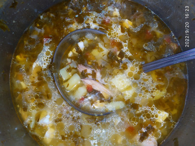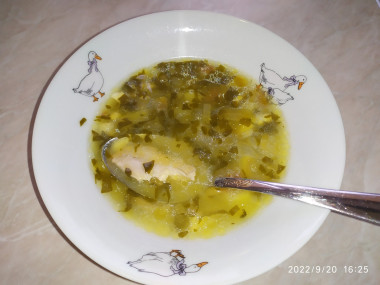 Щавель, добавленный в суп, делает блюдо неповторимо свежим и вкусным. В весенне-летнее время раздобыть свежий щавель не составит никакого труда. А вот зимой с этим могут быть проблемы. Но для этого блюда можно использовать замороженный или консервированный. Кстати, о заморозке щавеля необходимо позаботиться, как раз, в летнее время. Его необходимо перебрать, промыть, обсушить и нарезать. И в таком виде сразу заморозить. Имея пару пакетиков замороженного щавеля, вы сможете порадовать себя этим первым блюдом в любое время года. В готовый зеленый суп останется добавить лишь немного свежей зелени, такой как, укроп, петрушку или зеленый лук. Приятного аппетита и хорошего настроения!