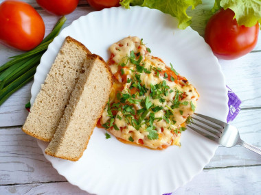 Мне очень понравилось сочетание жареного лука, помидор и расплавленного сыра!