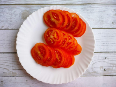 Помидоры выбирайте сочные, но плотные. Мягкие плоды плохо держат форму, в процессе нарезки и приготовления они расползутся в бесформенную массу и испортят внешний вид блюда.