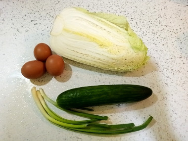 К ужину сделала легкий салат из пекинской капусты с огурцом и яйцом. Это сочетание нам очень нравится.