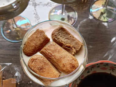 Добавьте еще 1 ст.л. крема, затем пропитанное кофем печенье, повторяйте это действие пока не заполните емкости.