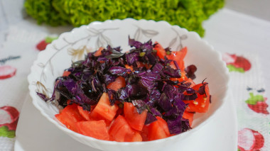 Подавать помидорный салат можно к мясу, картофелю или к макаронам.