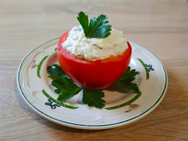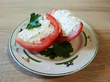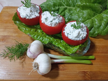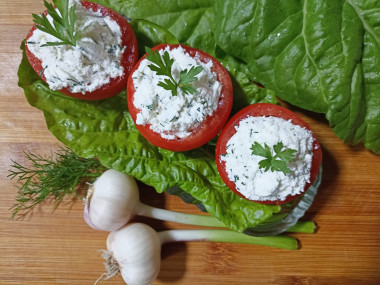 Наполните полученной творожной массой помидорные чашечки и сразу подавайте к столу. Закуска из помидоров с творогом и чесноком готова. Приятного аппетита!