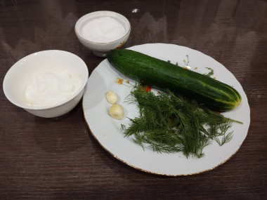 Как сделать салат из свежих огурцов в сметане? Подготовьте все необходимые продукты. Сметану берите любой жирности в зависимости от вашего вкуса: с 10% салат будет полегче, с 30% - посытнее.