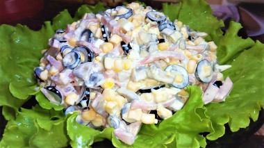 Приглянулся салат с полукопченой колбасой и кукурузой своим составом, все продукты любимые и хорошо сочетаются. Я большой любитель маслин, поэтому не могла их не добавить. Салатик полюбился сразу, спасибо за рецепт! Восторг Букетик Книксен