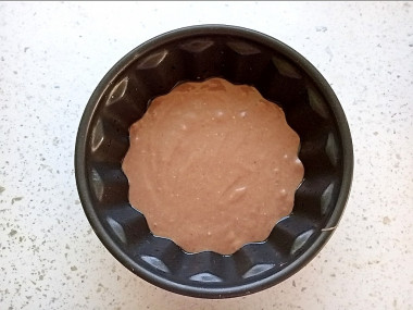 В смазанную сливочным маслом форму для кекса выложить сначала шоколадное тесто и разровнять. Я использовала силиконовую форму для выпечки, поэтому ничем ее не смазывала. На такое количество текста нужна не очень крупная форма. У меня форма была для большого кекса, а количество ингредиентов получилось для среднего. Поэтому форму получилось заполнить лишь наполовину и кекс получился не такой высокий, как хотелось даже с учетом подъема при при выпекании.