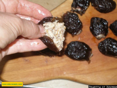 Подготовленный чернослив нафаршируйте смесью сыра с грецкими орехами и чесноком.