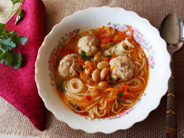 Знаю рецепт супа с фрикадельками и вермишелью. Более простой рецепт без томатной пасты.