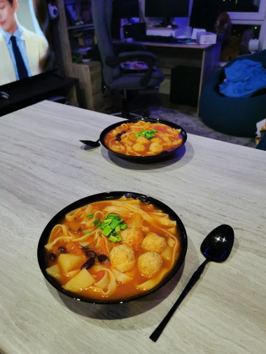 На обед приготовила азиатский суп с фрикадельками, лапшой и фасолью. Лук- порей пришлось заменить репчатым луком, лапшу я взяла специальную, для кукси. От картофеля в этом супе я отказалась по собственной инициативе. Готовится суп быстро и просто, получилось очень вкусно и сытно. Спасибо за рецепт!