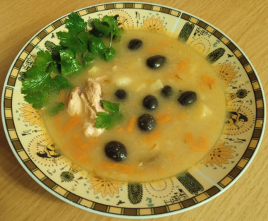 Я люблю и маслины, и оливки, но обычно сразу две баночки не открываю, поэтому в суп добавила то, что оказалось под рукой. Ещё у меня было немного домашнего соуса "Суго" из помидоров с пряностями. Соус обогатил вкус супа, но исчезла прозрачность бульона. Мне понравилось общее сочетание. Жемчужинка, благодарю за рецепт. Первый раз ела рисовый суп с маслинами, вкусно!