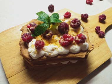 Медовыми могут быть не только тортики. Медовые пирожные с кремом и джемом из малины🤤