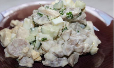 Очень понравился салат, легкий в исполнении. Если осталось мясо от бульона- обязательно пробуйте)