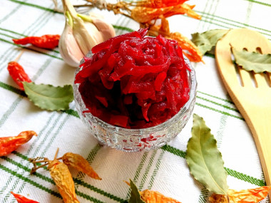 Этот свекольный маринад из свеклы как в столовой меня очень выручил, нужно было быстренько сделать салат на ужин для мужа. Свеклу я сварила заранее и после остывания убрала в холодильник. Варила таким же способом. Сначала час она варилась на среднем огне, а потом свеклу залила холодной водой, которую меняла периодически. Действительно, так корнеплод быстрее доходит до готовности. Лук я решила нарезать полукольцами для гармонии) При обжаривании от чеснока пошел такой дразнящий и аппетитный аромат! Очень люблю этот запах. За это время натёрла свеклу на крупной тёрке. Прогрела все буквально пару минут и вкусная закуска готова! Мужу очень понравилось) Мне самой больше пришелся по вкусу холодный вариант, т. к. теплый уксус немного обжигает, я добавила на это количество столовую ложку яблочного. Очень вкусно, спасибо!