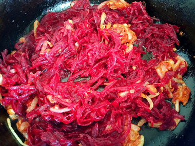 Свеклу очистите, натрите на крупной терке и переложите в сковороду.