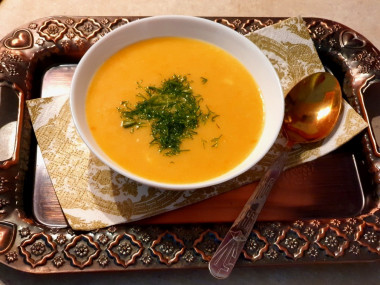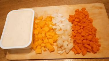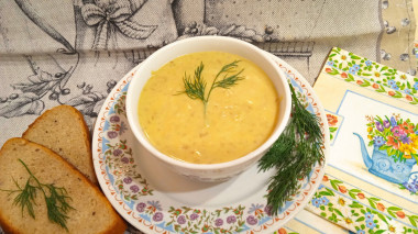 Рецепт крем супа с сыром от автора я взяла за основу, внеся небольшие коррективы, исходя из своих вкусовых предпочтений и бытовых возможностей. Готовила я этот супчик не на воде, а на курином бульоне, исключив из состава сельдерей, не очень я его люблю. Так как у меня нет погружного миксера, я переложила сваренный овощи в стационарный блендер для приготовления коктейлей, влила 1 стакан куриного бульона и взбила. Затем добавила плавленый сыр и снова взбила. А дальше продолжила готовить по рецепту. Я думаю, такие изменения на вкус супа никак не повлияли. В целом супчик мне понравился, однако мне чего-то не хватило. Может, как Мария советовала, мне следовало бы добавить курочку Надо подумать В общем, мне стоит поэксперементировать)