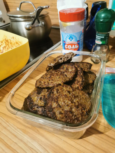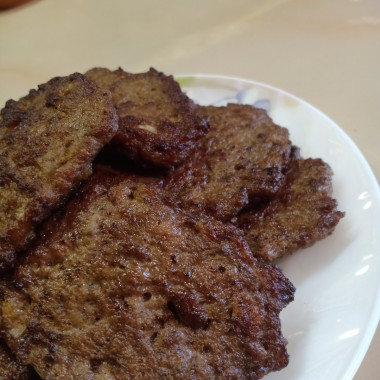 Волшебные нежные котлеты из говяжьей печени, все по рецепту, только прокручивала на мясорубке с самой крупной решёткой.