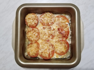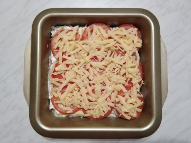 Поверх рыбы распределите половину помидоров. Посыпьте половиной тертого сыра. Повторите слои. О различных формах для выпечки читайте в статье в конце этого рецепта под шагами.