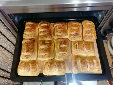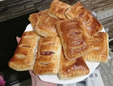 Помимо покупного, вы можете использовать и тесто собственного приготовления. Рецепт домашнего слоеного теста для этой выпечки вы можете выбрать в этом каталоге.