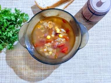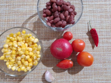 Как сварить острый мексиканский суп с фасолью, кукурузой и фаршем? Подготовьте необходимые ингредиенты. Вместо консервированной фасоли можно взять сухую. Ее нужно с вечера замочить в большом количестве холодной воды и отварить до готовности примерно в течение часа. О том, как правильно выбрать консервированную кукурузу, читайте в конце рецепта.