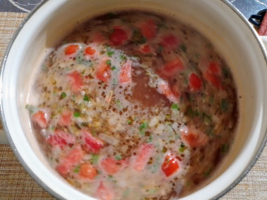 Влейте мясной бульон. Доведите суп до кипения и варите на медленном огне при слабом кипении около 7-10 минут. В конце варки попробуйте суп на вкус и при необходимости посолите и поперчите.