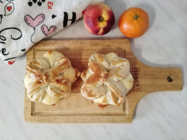 Помимо покупного, вы можете использовать и тесто собственного приготовления. Рецепт домашнего слоеного теста для этой выпечки вы можете выбрать в этом каталоге.